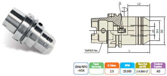 | HSK63A-HC 1 1/4- 4.92 | 1.250 | 2.520 | 1.969 | 4.921 | 2.480 | 2.165 | M16x1.0mm | WQ030 | |