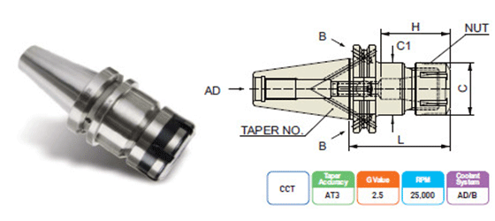 | TAPER No. | MODEL No. | CLAMPING RANGE | L | C | C1 | H | COLLET | EDP No. | |