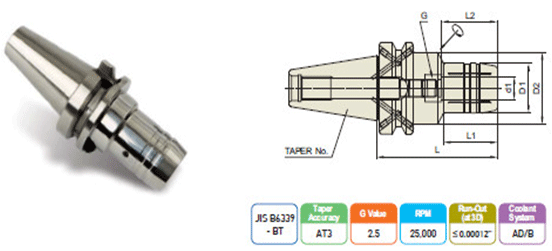 | 40 | BT40AD/B - HC 1/4 - 3.54 | 0.250 | 1.024 | 1.693 | 3.540 | 1.181 | 1.063 | M5x0.8mm | WH020 |